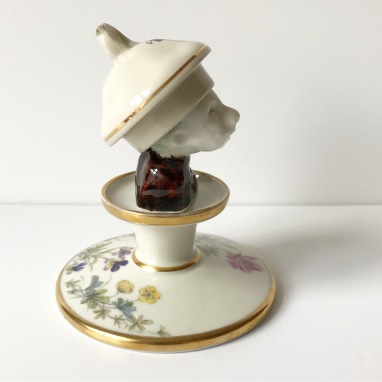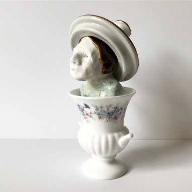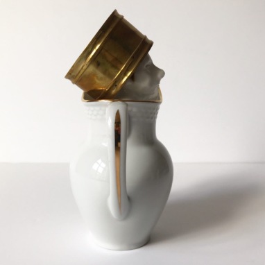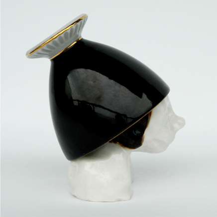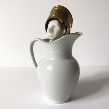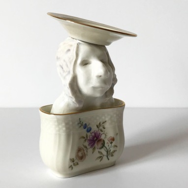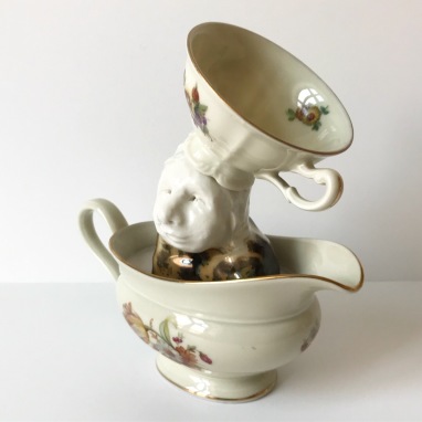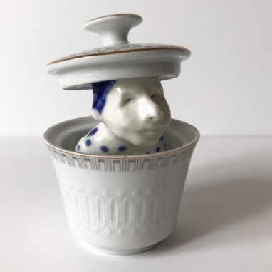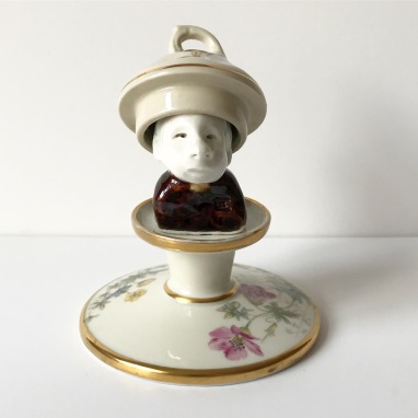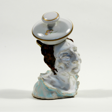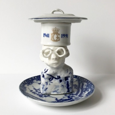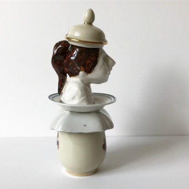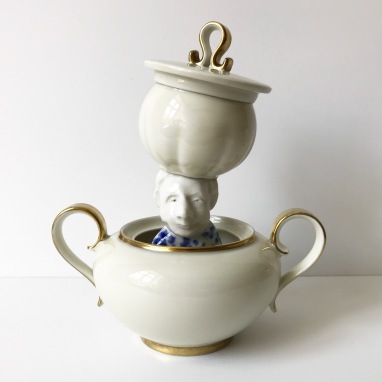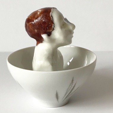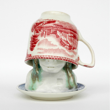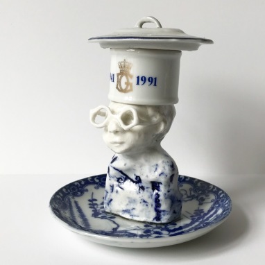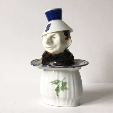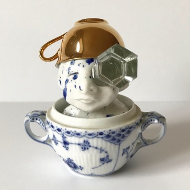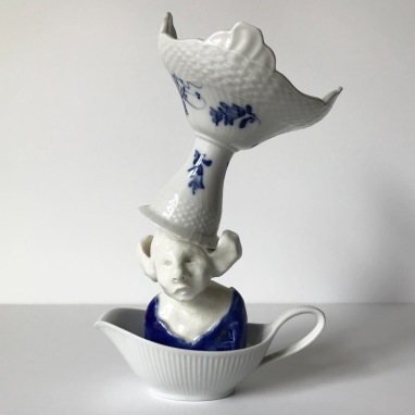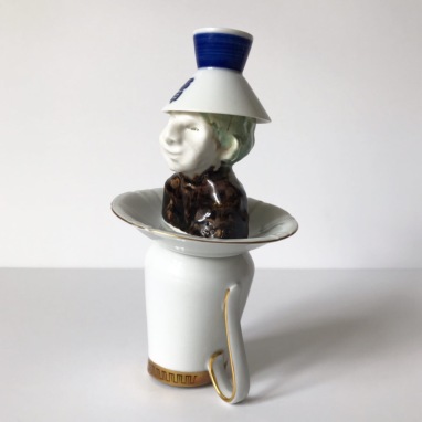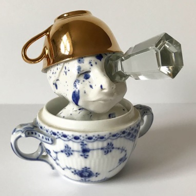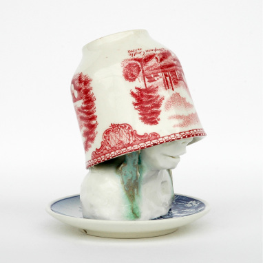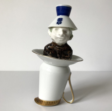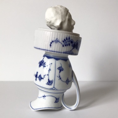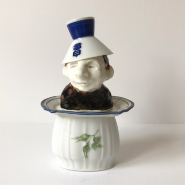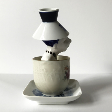 skulptur i glaseret porcelæn og sakekop