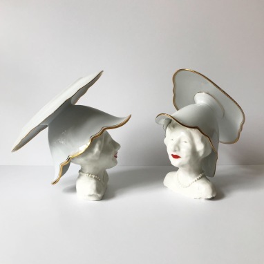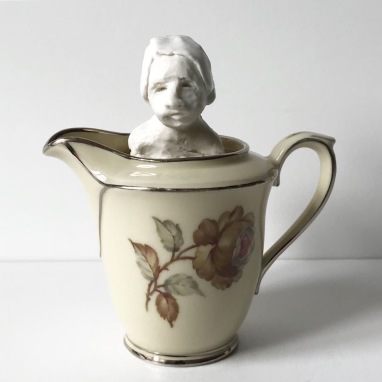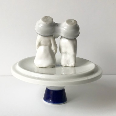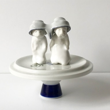 skulptur i glaseret porcelæn og flødekande