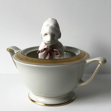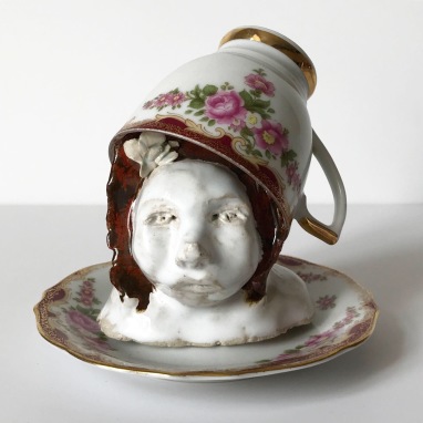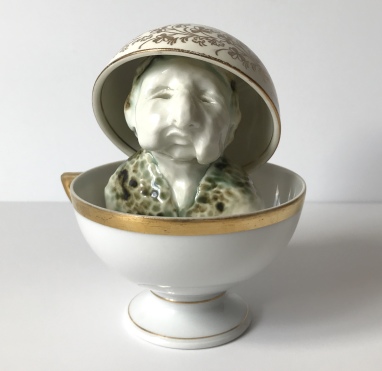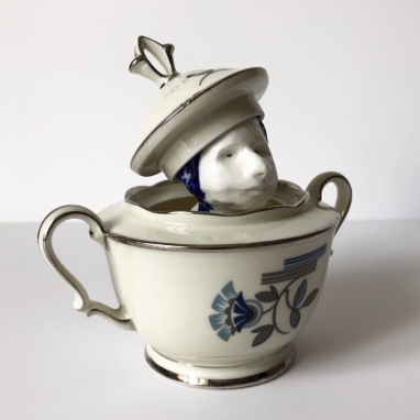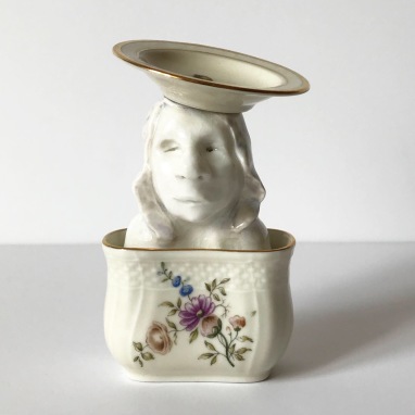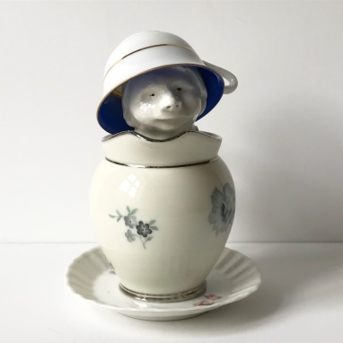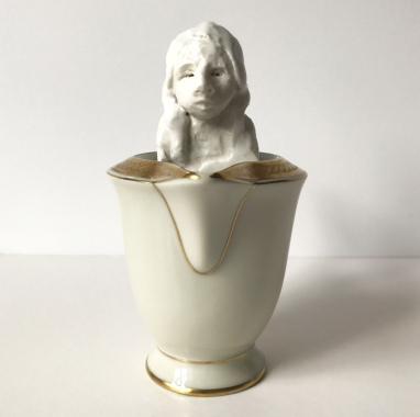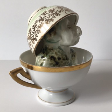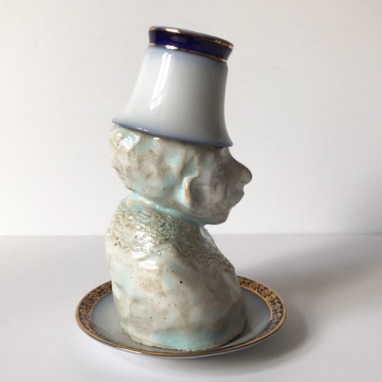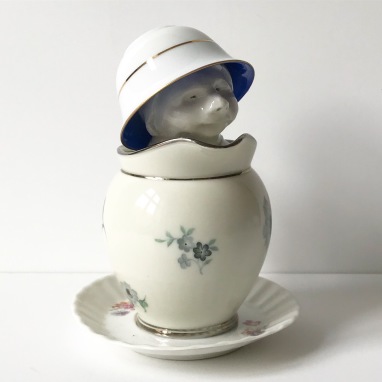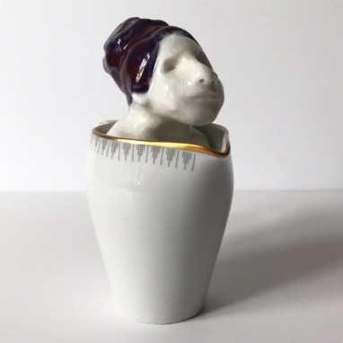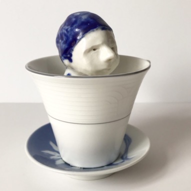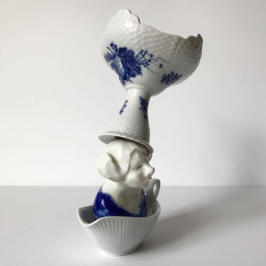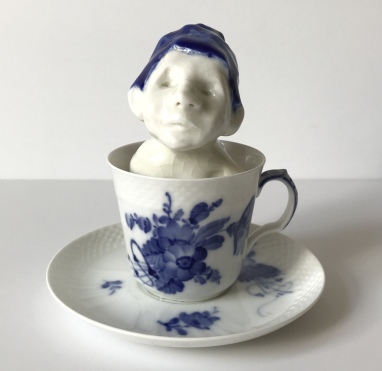 skulptur i glaseret porcelæn og underkop