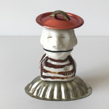 skulptur i glaseret porcelæn, dessertform og miniature grydelåg