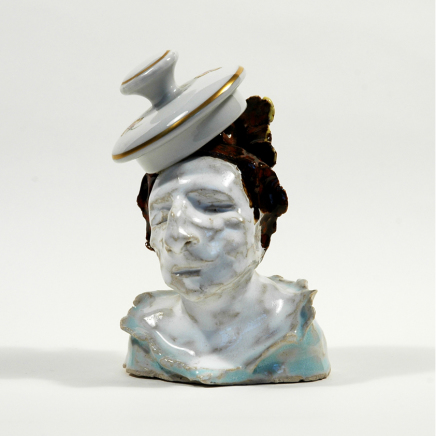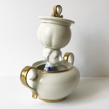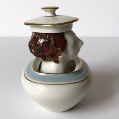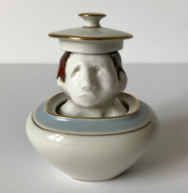 sculpture in glazed porcelain, sugar bowl with lid
