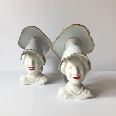 skulptur i glaseret porcelæn og lysestage