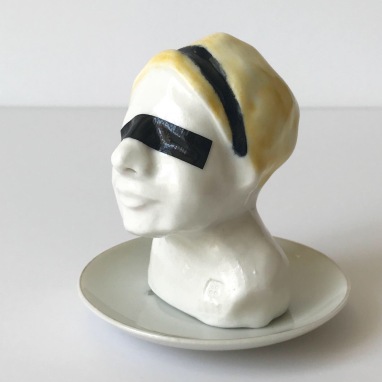 skulptur i glaseret porcelæn, smør tallerken og gaffatape